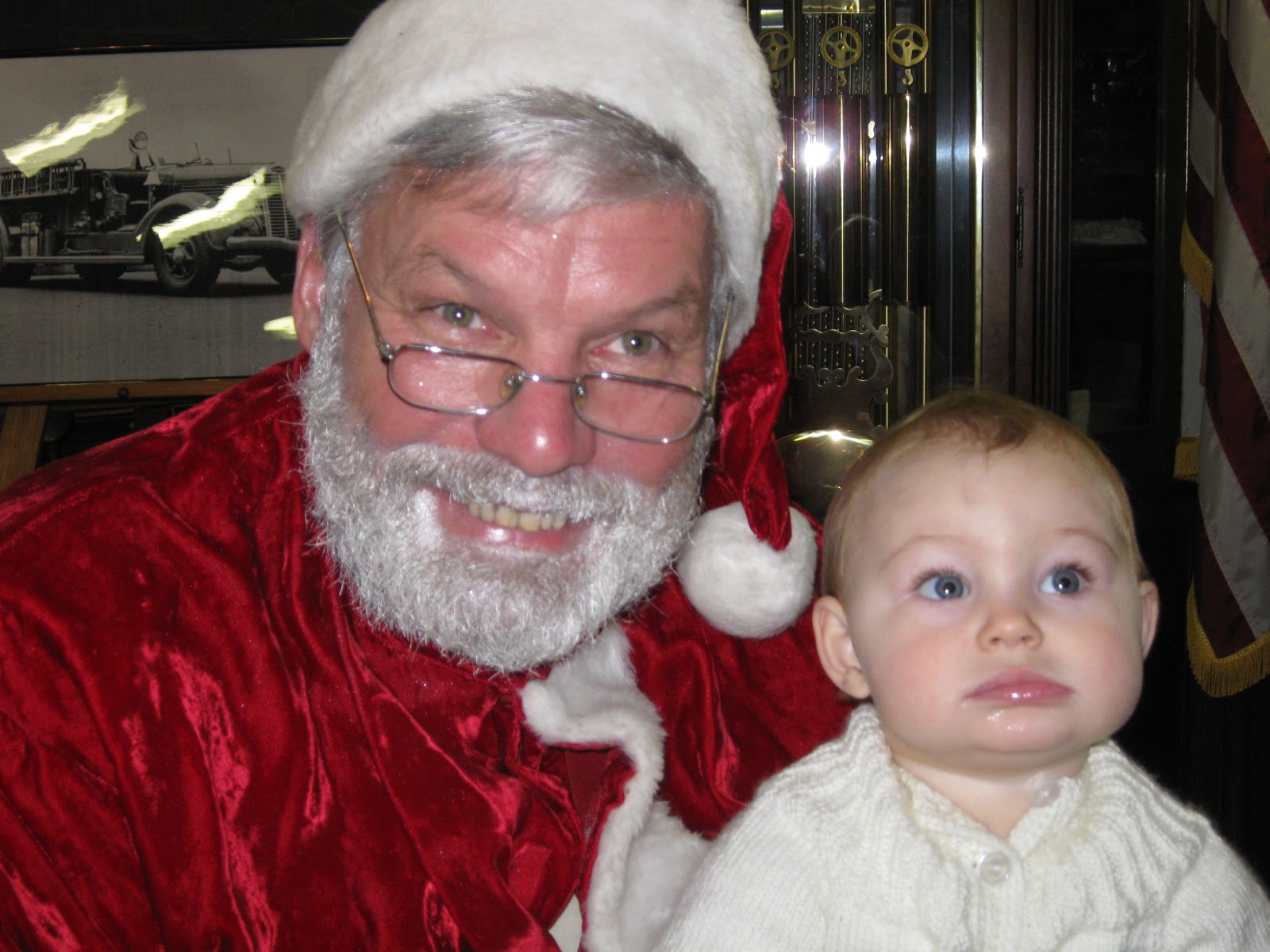 We didn't get any super smiley happy pictures but I still pretty darn cute. It's such a sweet little thing that our town does. There were maybe a half dozen kids when we were there and they hand out cookies, juice boxes, and coloring books. Santa is really patient and will let you take a million pictures if you want. There's no crazy line or crazy shopping mall madness going on. We will definitely be making it a yearly tradition.